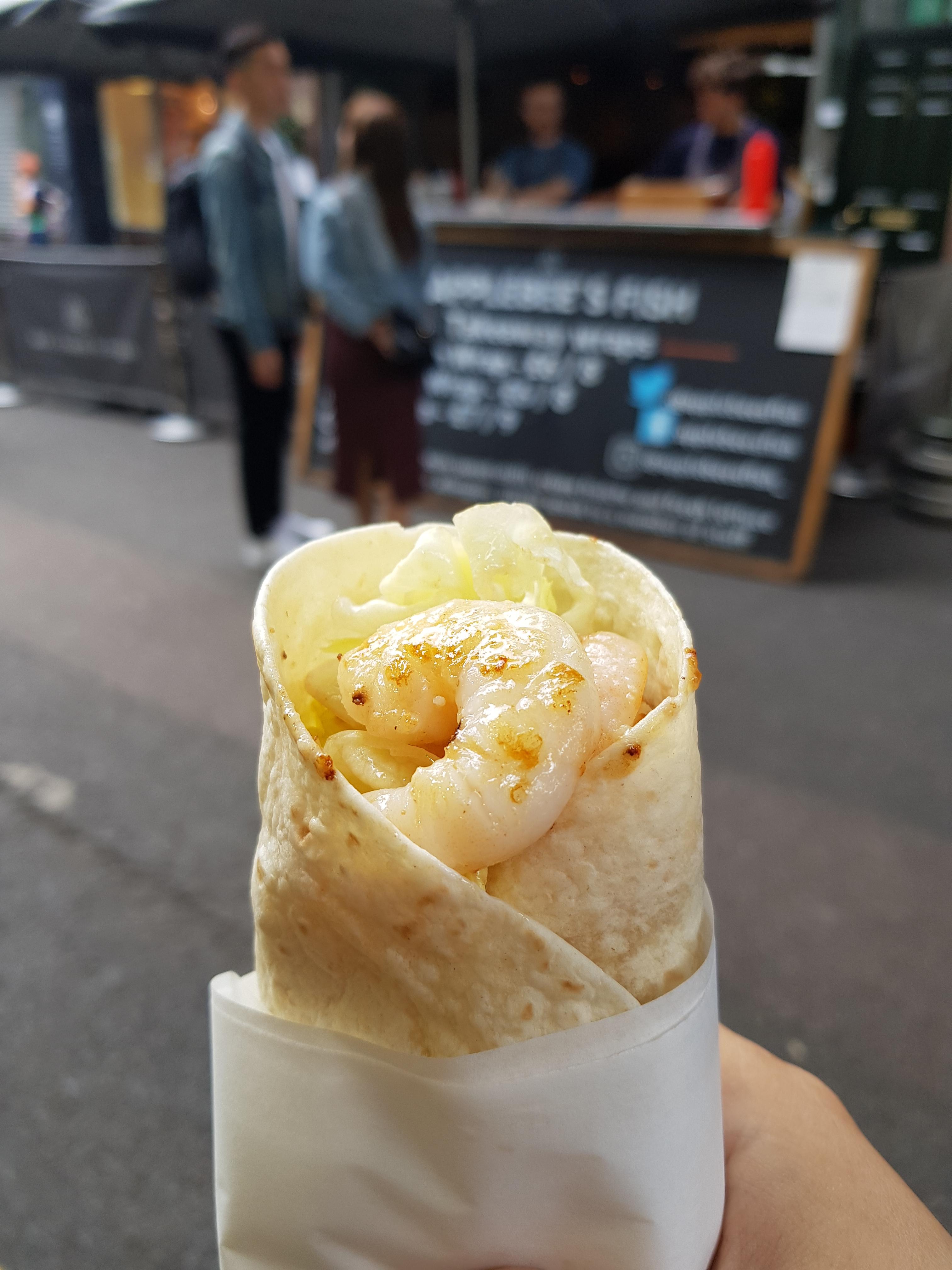 제가 선택한 맛집은 바로 요기, 애플비스 피쉬입니다. 갈릭 프라운 랩을 시켜봤는데 진짜 엄청 맛있었어요! 주문하면 재빠르게 만들어주는데요. 소스가 진짜 맛있었던 기억이 나네요. 한끼 식사로도 손색이 없어요. 배가 그리 고프지 않고 뭔가 먹어보고 싶다고 하면 추천합니다.