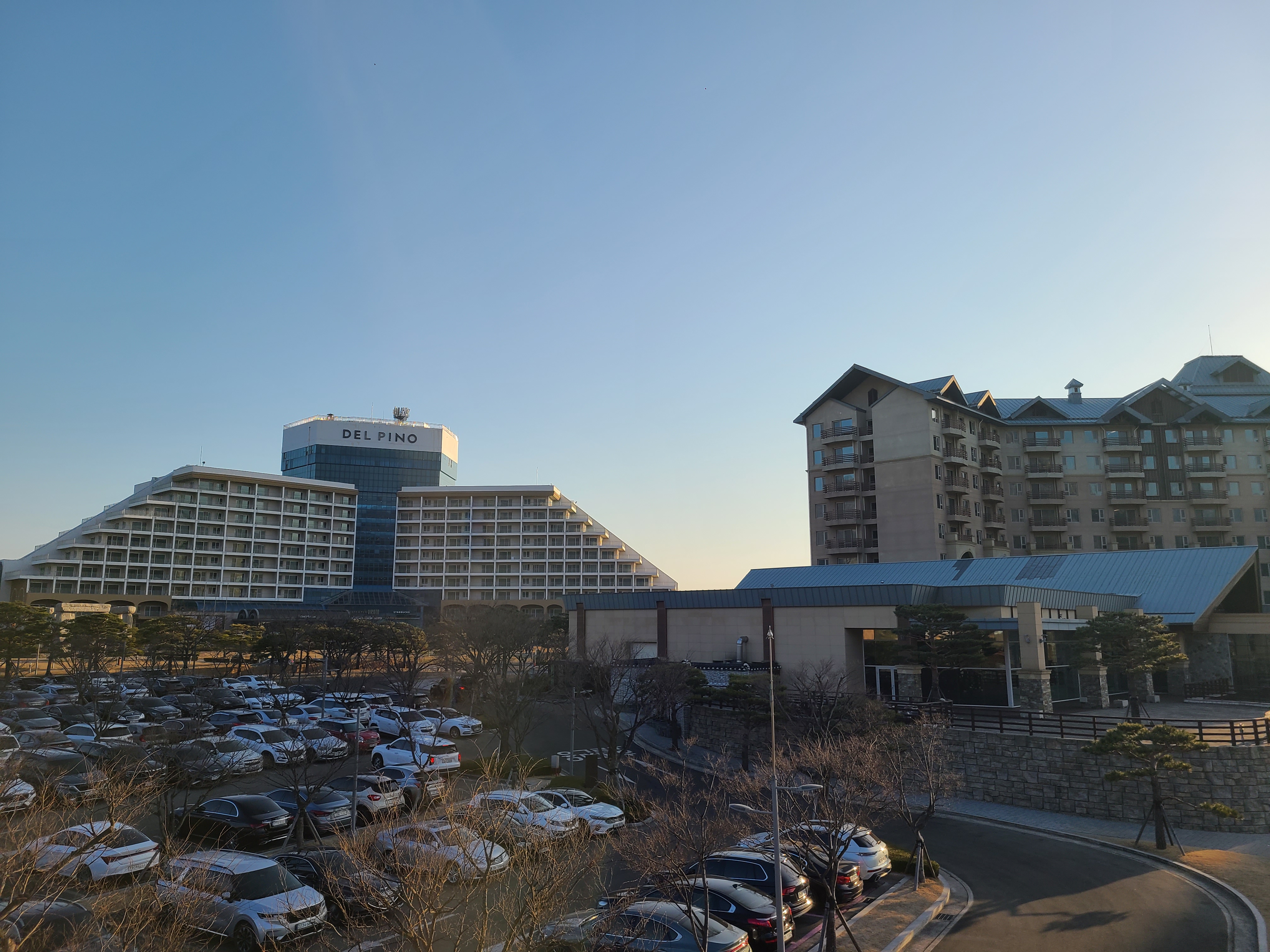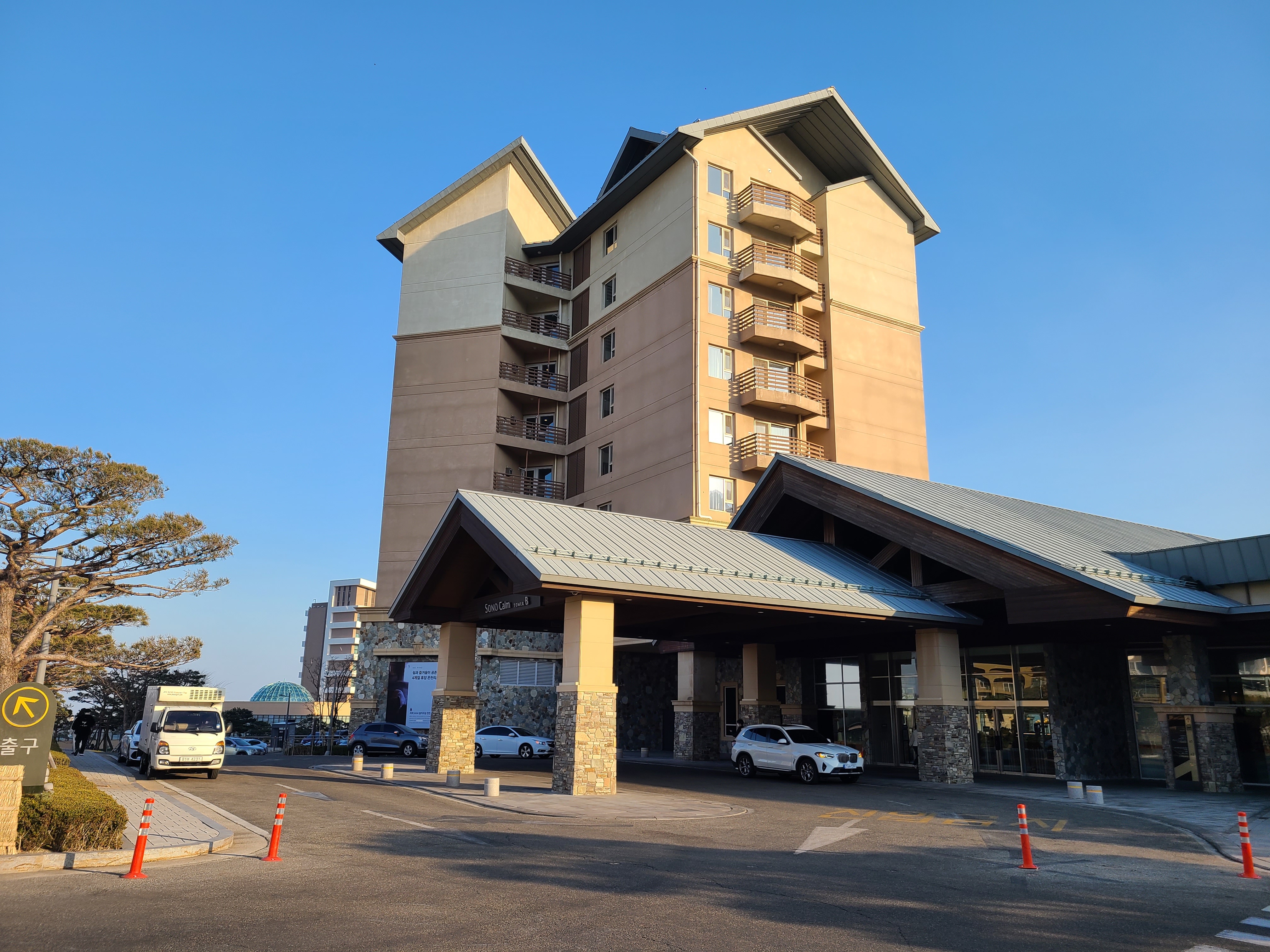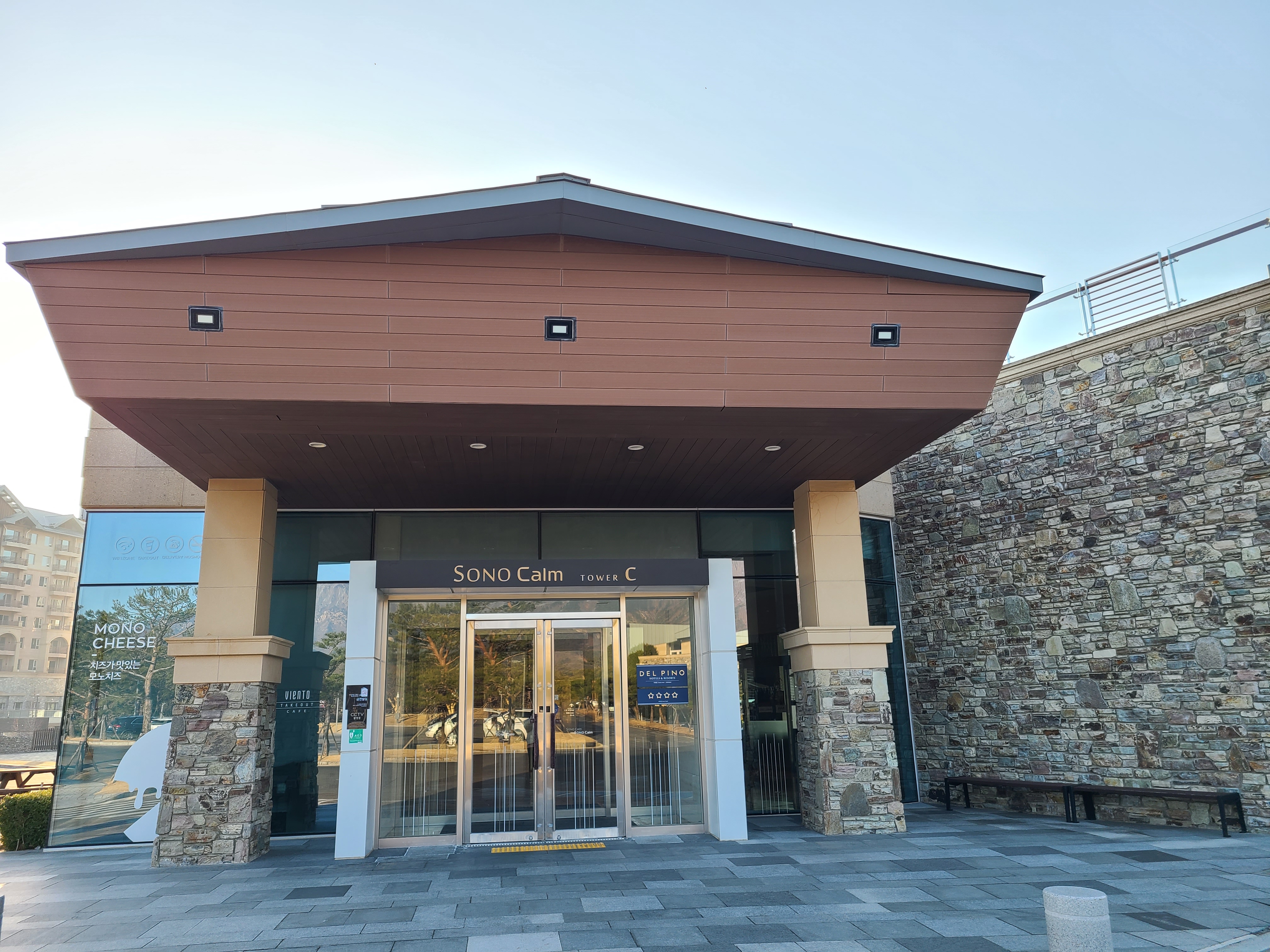 사진 마지막에 보이는 건물이 소노캄 AB가 있는 건물인데요. 여기서 체크인을 한 뒤 C동으로 이동하는 형태입니다. 내부 연결통로가 있어서 편리해요. 저는 풍경 보려고 첫날은 일부러 밖으로 나왔습니다.