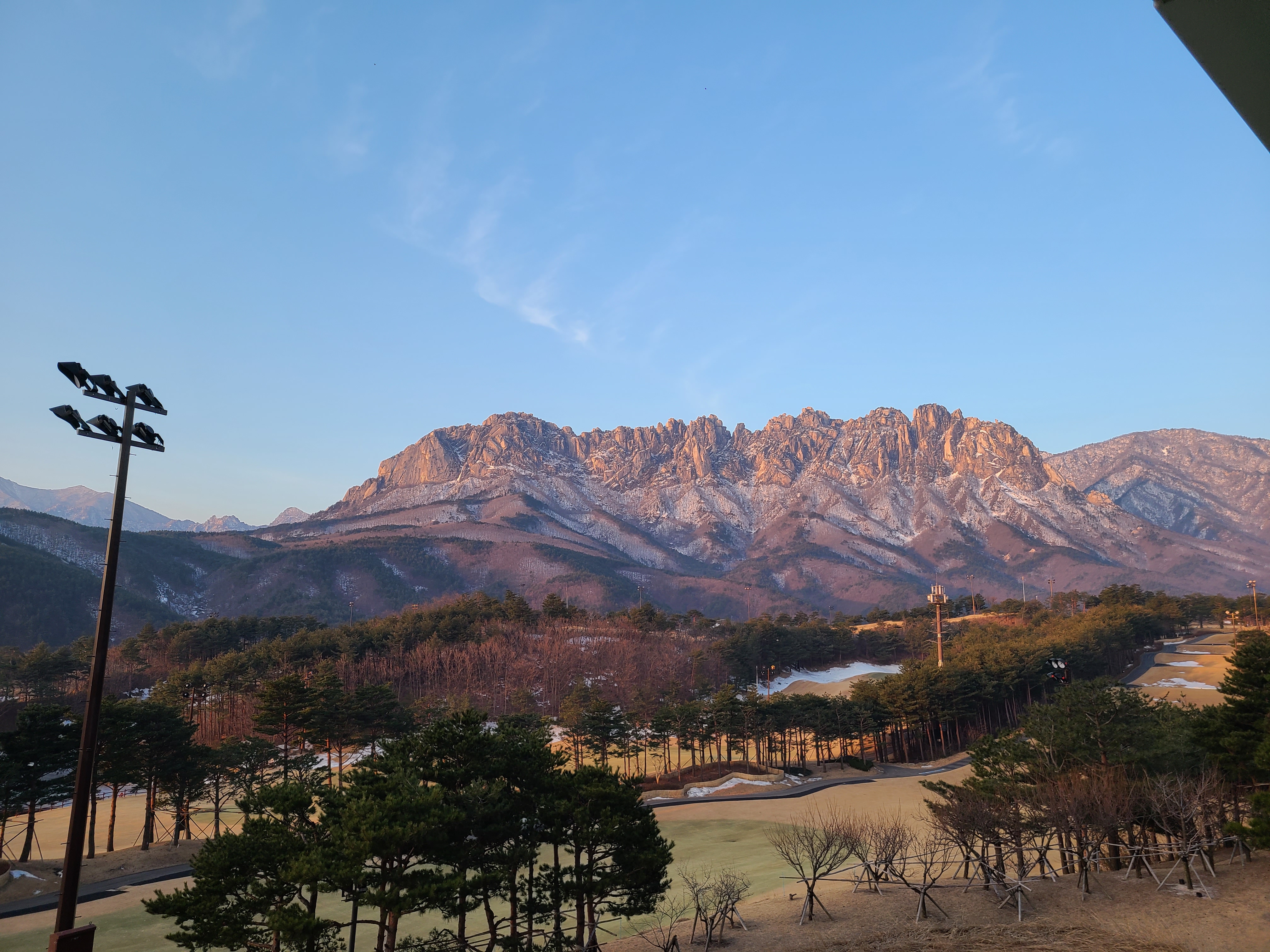 그리고 소노캄 C동이 좋은 이유. 바로 꼭대기에 이런 전망대가 있어요. 탁 트인 시야로 울산바위를 보고 인생샷도 건질 수 있는 스팟이죠. 이른 시간에 갔더니 사람이 하나도 없어서 얼른 얼른 사진을 찍었어요. 제가 찍고 내려오니까 금방 사람이 늘어났어요. 다른 룸에 묵으시더라도 누구라도 갈 수 있으니 꼭 들러서 사진 찍으세요. (여기 울산바위가 잘 보이는 카페가 있지만, 저는 굳이 돈들일 필요를 느끼지 못했어요.)
