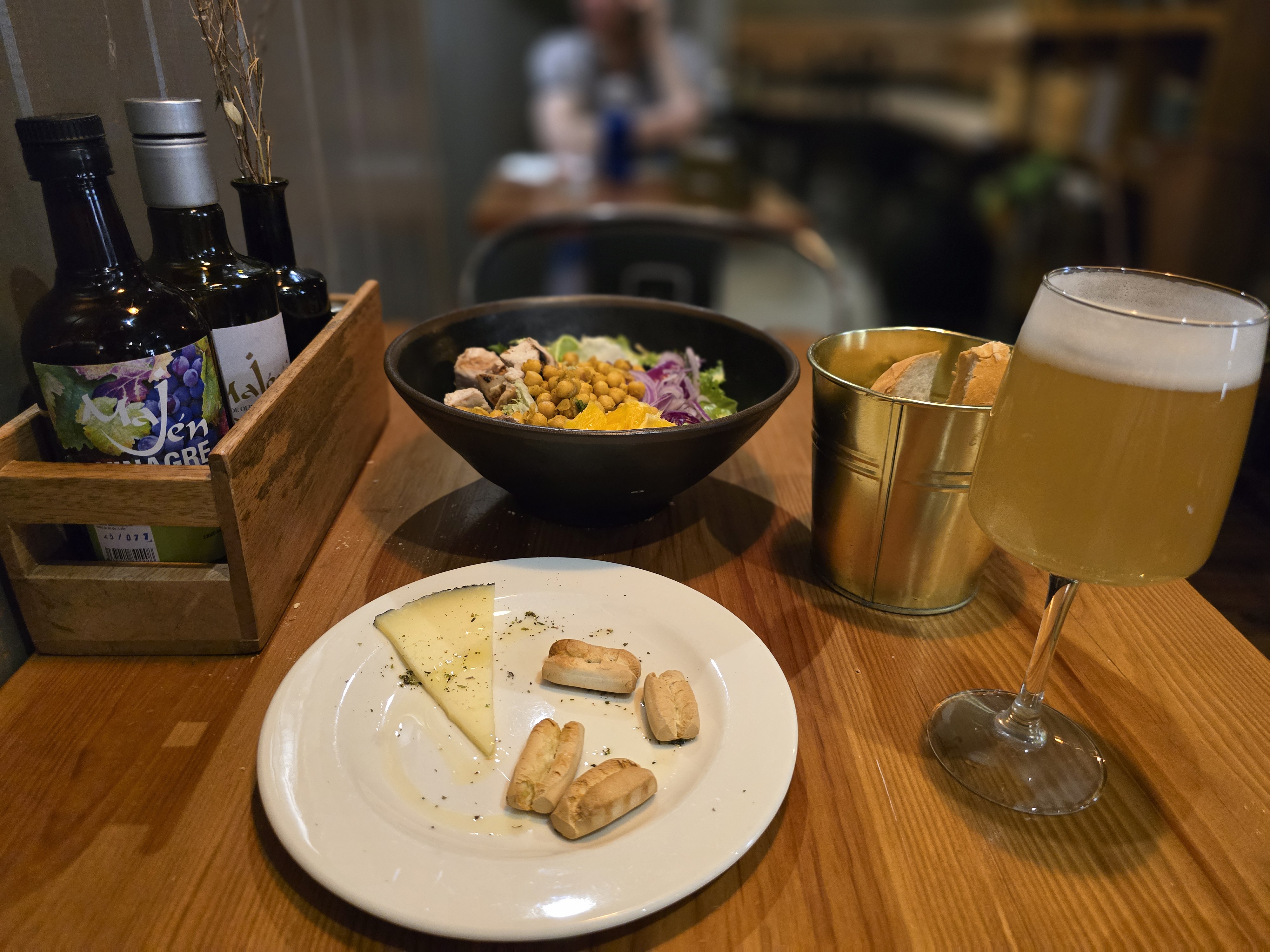 저는 치킨이 들어간 샐러드, 파스타, 그리고 요거트 아이스크림을 골랐어요. 지로나에서도 메뉴 델 디아 가격이 미쳤다고 생각했는데 여기는 11유로밖에 안해요. 북부와 남부의 물가차이가 느껴지시나요? 메뉴는 다 괜찮았는데 파스타가 에러였어요 ㅠㅠㅠㅠ 소스가 제 취향과 멀었다는 ㅠㅠㅠㅠ 메뉴 델 디아는 그래도 다른 걸 선택할 수 있으니 참고하셔서 맛있는 식사하시길.