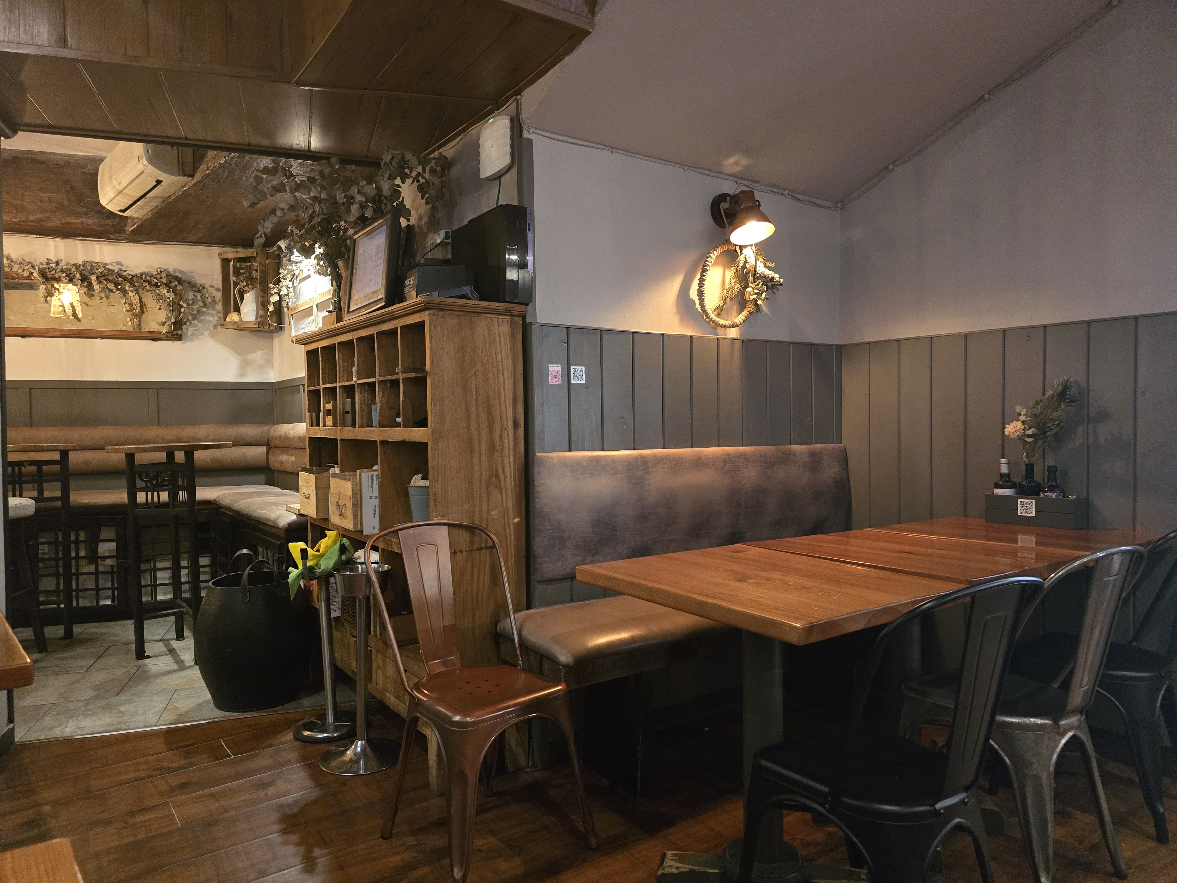 내부는 요런 느낌이고, 거의 마감시간에 가서 좌석은 여유가 있었어요. 소소하면서도 인상적인 인테리어가 멋졌어요. 내부가 아주 넓은 편은 아니랍니다.