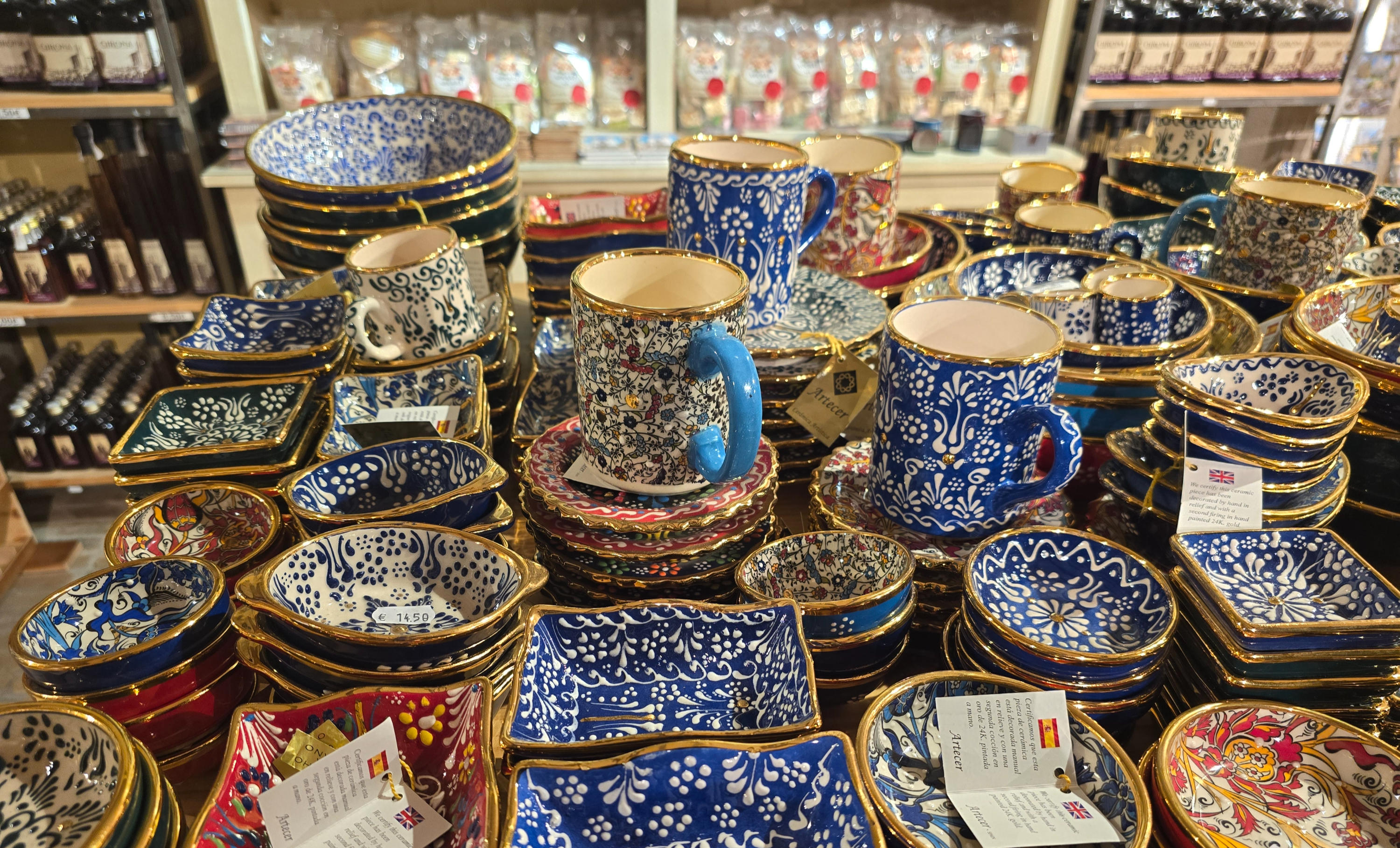그릇이나 컵에 관심이 많다면 꽤 괜찮은 선물이 될 거 같네요. 참고로 저는 컵만 한 개 샀어요. 그릇매니아는 아닌지라. ㅎㅎ 다만 이런 모양은 지로나에서 사도 좋고 그라나다에 가도 많더라고요. 아마 유대문화 뭐 그런거나 이슬람 문화에서 영향을 받은 탓인 거 같아요. 가격대는 다양한데 어, 좀 예쁘다 그러면 가격이 으악-할 것도 많아요. ㅎㅎ