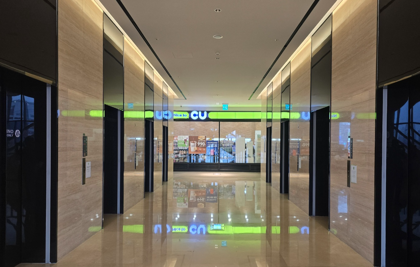 근처에는 별 게 없고요. 다만 아이파크에서 구름다리로 연결되어 날씨가 살짝 안 좋았는데도 우산 없이 이동할 수 있어서 좋더라고요. 이건 일부러 밖으로 나와서 찍은 입구입니다. 이쪽과 반대쪽에도 입구가 있어요.