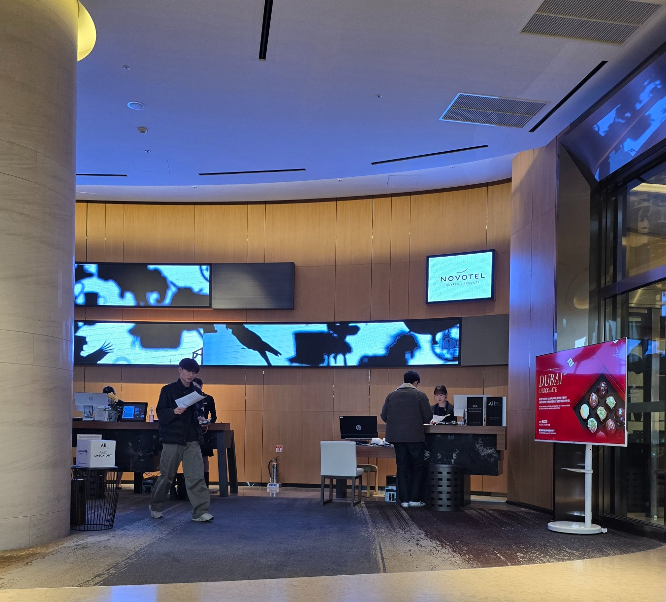 메가 바이트 지나면 바로 이렇게 로비인데요. 이쪽이 노보텔 좀 더 들어가면 이비스 로비가 있습니다. 호텔이 나뉘어져 있다보니 사람도 많고 북적북적한 기분이 듭니다.