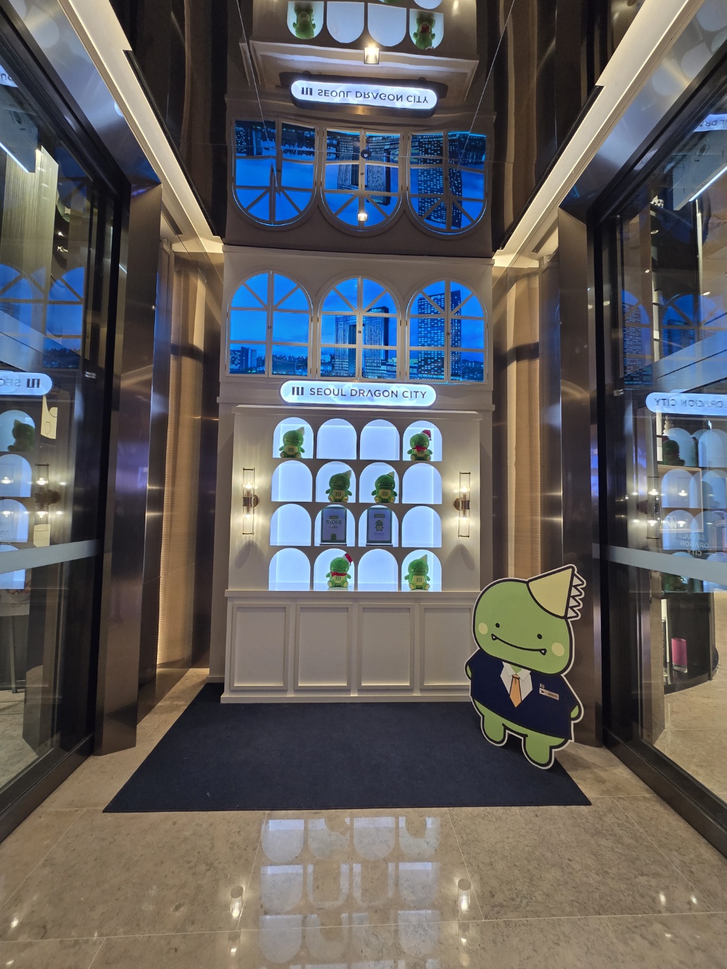 방 사진을 찍고 밖으로 나오던 중 보이던 커다란 용(?) 인형하고 포토 스팟을 찍어봅니다. 혼여의 단점, 셀카로 담을 수 없다는 점.