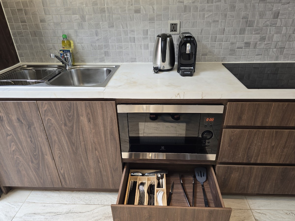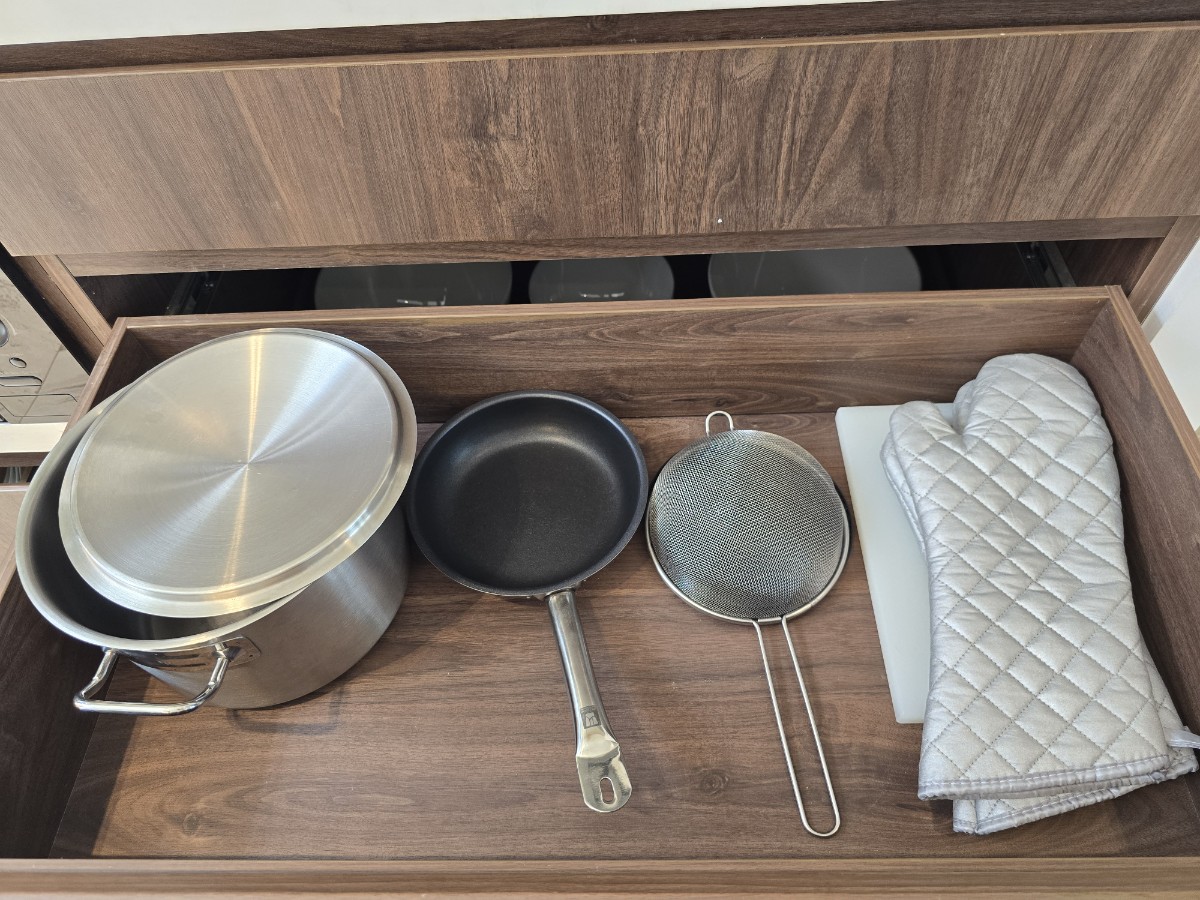 생각보다 커다란 냉장고가 매우 마음에 들었어요. 보통 냉장이 안되는 작은 냉장고만 보다가 저런거 보니까 반갑긴 하더라고요. 잘 돌아가는 전자레인지와 여러 식기가 있었으나 여행가서 조리해먹는 건 취향이 아니라 패스. 참고로 냉장고에 있는 건 무료가 아니고 돈 받습니다만, 가끔 프로모션 잘 걸리면 무료일 때도 있다고 해요.