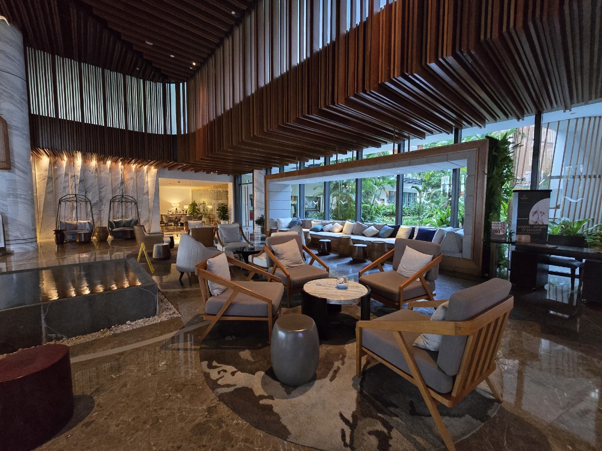 숙박 시설의 첫 인상이 결정되는 곳입니다. 역시나 층고가 높고 탁 트인 느낌의 로비죠. 다만 에어컨이 나오는 건지 안 나오는 건지 모르겠으나 약간 덥다고 느껴집니다. 물론 밖에서 들어가면 시원하긴 한데 ㅋㅋ 전반적으로요. 좀 더워요.