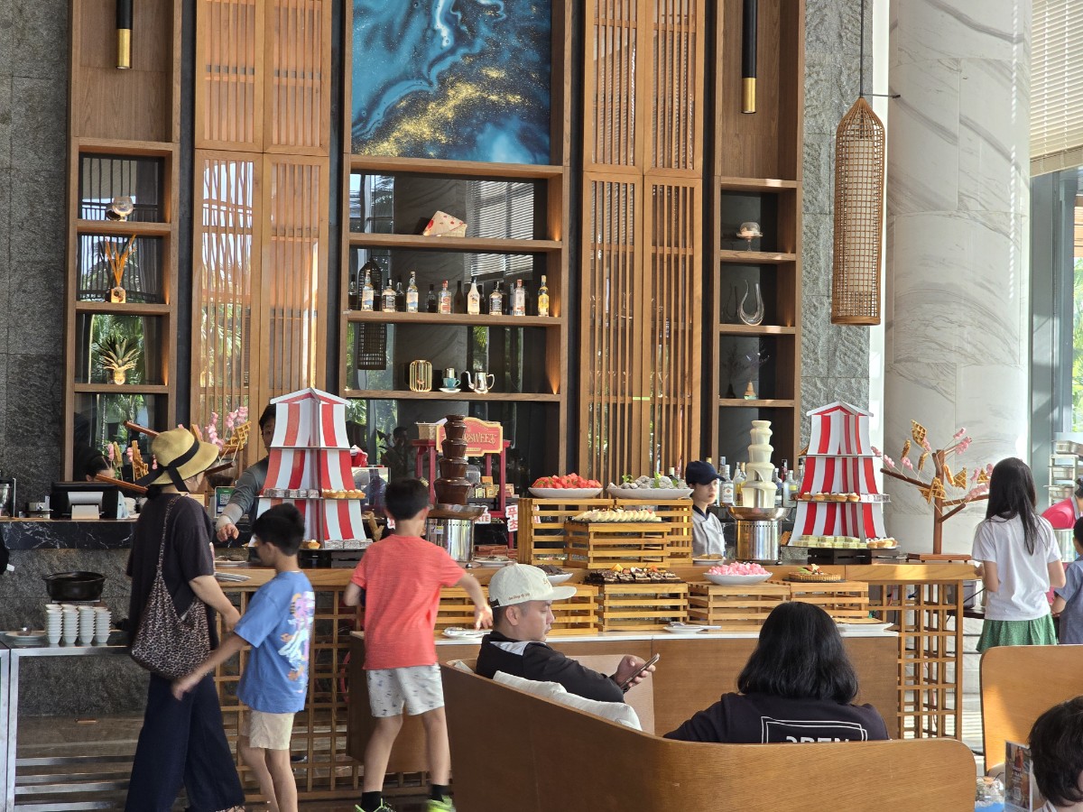 모벤픽의 시그니쳐라고 해야 할 까요. 매일 3시30분부터 4시 30분까지 투숙객 누구나 참가 가능한 초컬릿 데이가 열립니다. 로비 반대편에 작은 카페인데요. 가기전에 사진은 많이 봤는데 직접 가서 보니 생각보다 작은 규모에요. 게다가 역시나 아이들이 많아서 저는 그냥 쿠키랑 초코 몇개 먹고 말았어요. 온통 당, 당, 당이라서 ㅋㅋ 어른들은 한번 가서 살짝 먹어보는 정도면 족하지 싶습니다.
