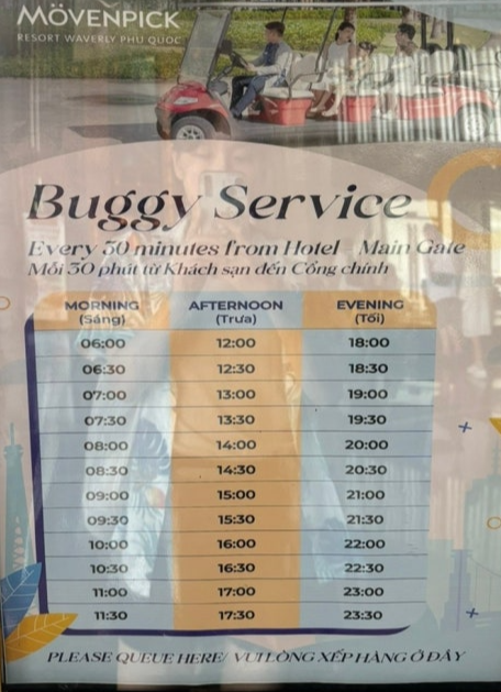 여느 베트남 여행지가 그렇듯 그랩을 많이 이용하고요, 그게 편하긴 합니다. 이 리조트의 단점이라고 생각하는 부분이 메인게이트와의 거리인데요. 로비에서 메인게이트까지 거리가 상당합니다. 그래서 버기를 제공하긴 하는데 언제든 갈 수 있는게 아니라 1시간에 1대라는 게 문제에요. 배달도 대다수 메인게이트까지만 오기 때문에 이런 점은 미리 생각하셔야 합니다.